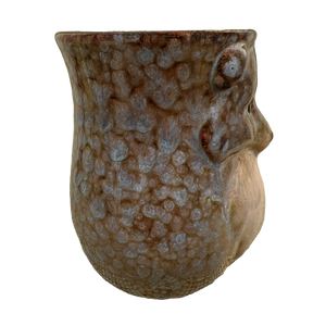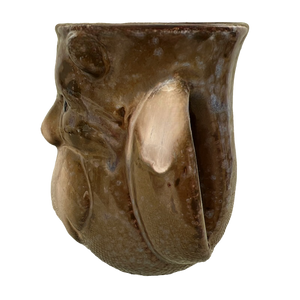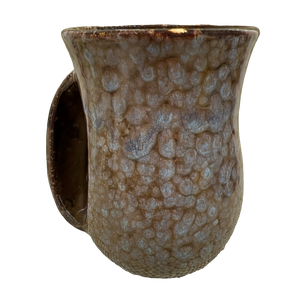 It features a hand warmer handle where your hand fits inside it so that the warm beverage in the mug will warm your hand.