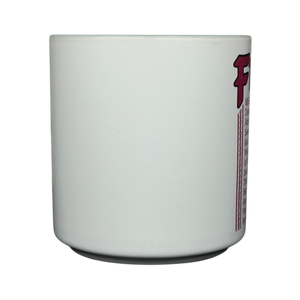 This vintage ceramic mug from Papel’s Poetry collection features a personalized tribute to the name Frank, complete with a celebratory "Meaning: Independent" headline and a matching multi-line poem in a rich burgundy script. Crafted in Korea, the white vessel boasts a traditional cylindrical silhouette with a sturdy C-handle, offering a comfortable grip for enjoying your favorite hot beverages. The clean aesthetic is accented by a classic braided border along the text, making it a thoughtful gift or a nostalgic addition to any kitchenware collection.