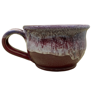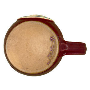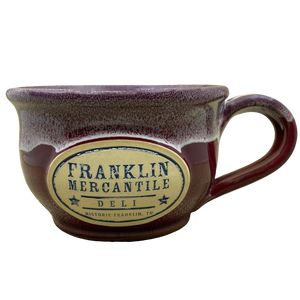 This is a hand thrown mug that features a raised plaque on its front surface with an etched logo for the Franklin Mercantile Deli in historic Franklin, Tennessee.