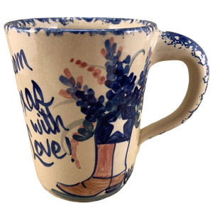 It features an image of a boot with a Texas star on it and flowers coming out of the top of it.