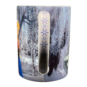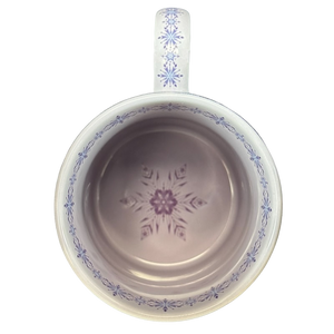 On the center of the handle and the interior upper surface are purple and blue snowflakes.