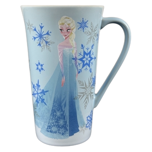 This tall mug features an image of Elsa on its front surface and a different image of her on its rear surface.