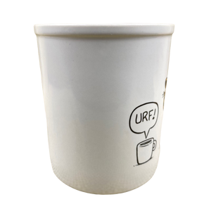 Features an image of Garfield looking at a cup of coffee on the front surface. Above the cup is printed "URF!"