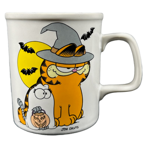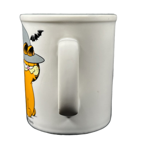 Features an image of Garfield wearing a witch hat surrounded by bats with Odie as a ghost by his side.