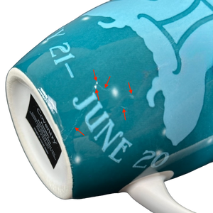 There are some imperfections on the exterior and bottom surface. Please see the red arrows pointing to areas in the last two photos where the imperfections are most noticeable. Also look carefully at all of the photos to see any other imperfections present.