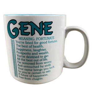 Features the name GENE printed in a large font at the top of the front side of the mug. Directly underneath this is a poem about the name GENE.