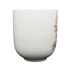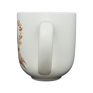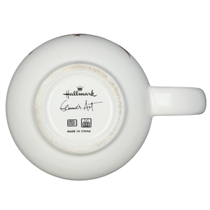 This lovely hallmark ceramic mug features a whimsical illustration of two colorful birds perched on a banner that reads love wins, framed by a delicate heart-shaped vine of white flowers. the clean white exterior highlights the intricate artwork, while the vibrant yellow interior creates a striking contrast, with a glaze that begins lighter at the rim and gets progressively darker towards the bottom. part of the genuine's art collection, this sturdy mug is designed for both style and practicality, being microwave and dishwasher safe for easy daily use. whether you are enjoying a morning coffee or a cozy evening tea, this piece adds a touch of warmth and positive sentiment to your kitchen collection.