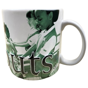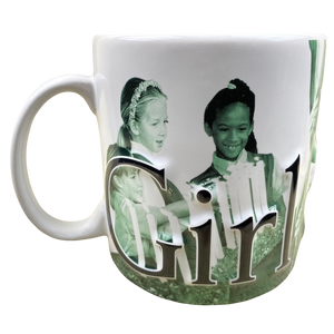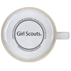 Features artwork wrapping around its exterior surface depicting Girl Scouts in the background with "Girl Scouts" embossed in a large black font in the foreground.