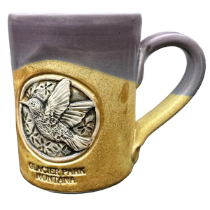 Features an etched circular area with a beautiful etched and embossed hummingbird within it on its front surface.