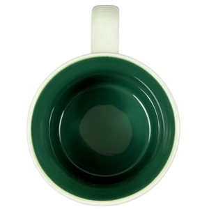 NOTE: In the 360 photo, this mug reflects the spinning surface that it is being photographed on. This results in a reflection on the lower portion of the mug. This coloration is not actually present on the mug.