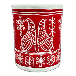 Features lightly etched gnomes and snowflakes wrapping around its exterior surface.