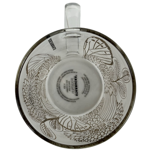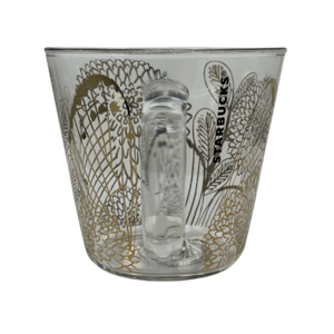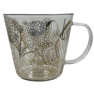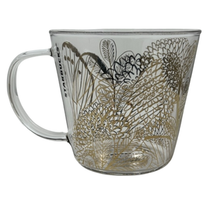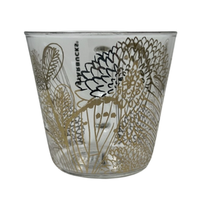 It features gold artwork depicting flowers and butterflies wrapping around its exterior surface.