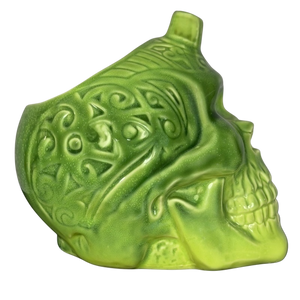 Bring home a piece of Las Vegas flair with this vibrant green ceramic skull mug from The Golden Tiki in Chinatown, Las Vegas. Sculpted with dramatic facial contours and wrapped in intricate carved-style patterns, this mug captures the exotic, theatrical spirit the bar is known for. Its glossy green glaze highlights every detail, giving it a bold, collectible look that stands out on any shelf. Whether you’re a tiki enthusiast, a Golden Tiki regular, or simply someone who loves distinctive ceramic art, this mug offers a striking blend of island-inspired design and Vegas personality. Perfect for display or for adding a touch of Golden Tiki magic to your favorite drink.