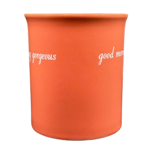 Printed in a white font on its front and rear surface is "good morning gorgeous."