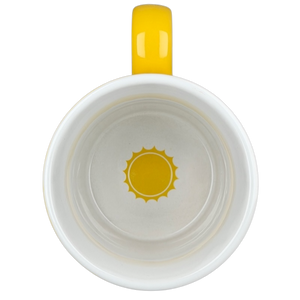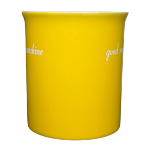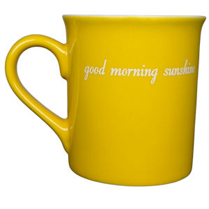 Brighten your morning routine with this cheerful yellow coffee mug from Love Your Mug. The vibrant exterior is adorned with the phrase "good morning sunshine" in a clean white script on both sides, while the crisp white interior features a hidden yellow sun illustration at the bottom to greet you as you finish your drink. Designed with a sturdy, ergonomic handle, this ceramic piece is perfect for long morning coffees or cozy evening teas. This high-quality mug is both dishwasher and microwave safe, making it a practical and uplifting addition to any kitchen collection.