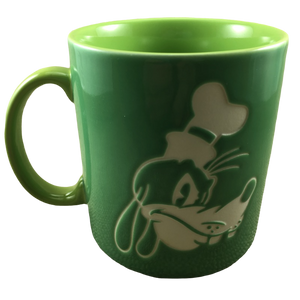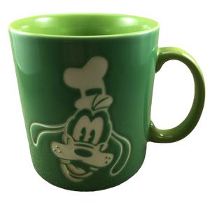 This is an oversized mug that features Goofy etched in white into the green front and rear surface.