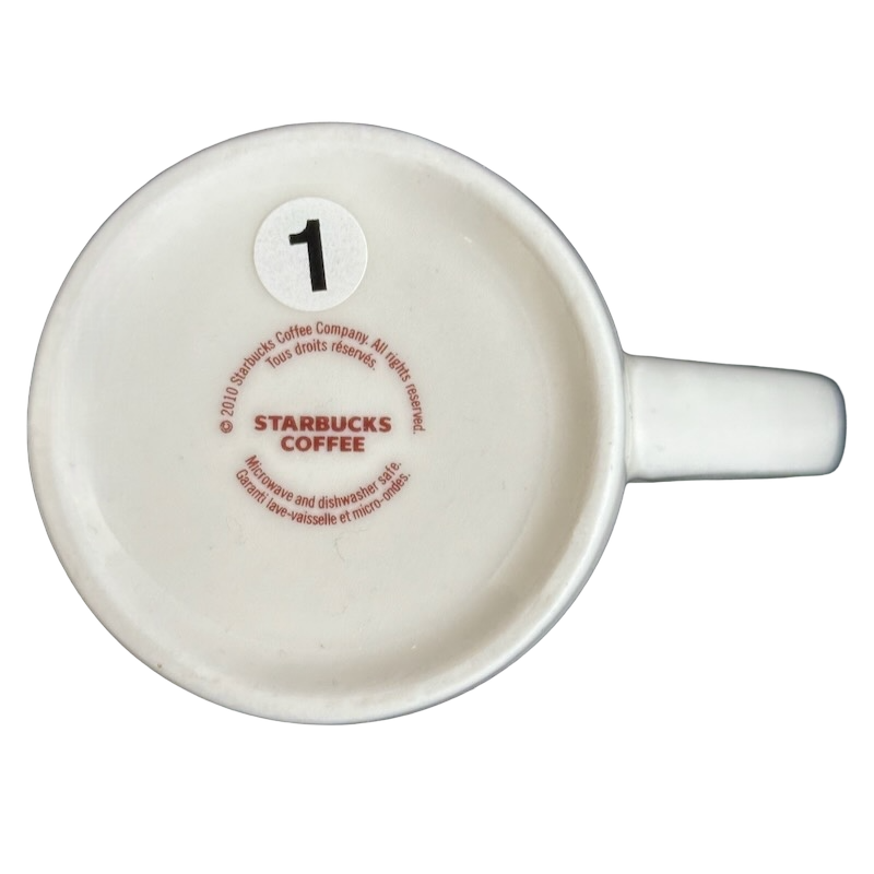 The base stamp confirms this as an official 2010 Starbucks release, crafted in China and fully microwave- and dishwasher-safe for everyday convenience. With its understated design and ample 16-ounce capacity, this mug is perfect for lattes, brewed coffee, tea, or any favorite hot beverage. Its clean aesthetic and classic proportions make it a standout addition to any Starbucks collection or a stylish daily-use mug for anyone who loves timeless simplicity.