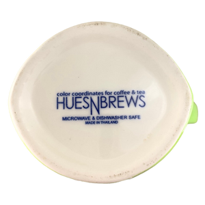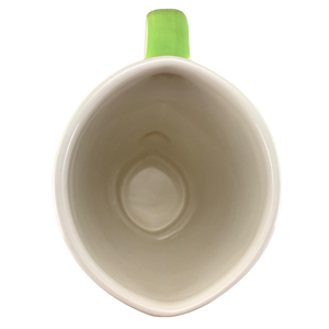The background of this mug is green with a matching shade on the handle.