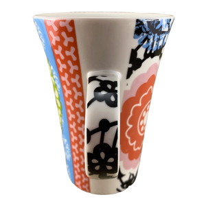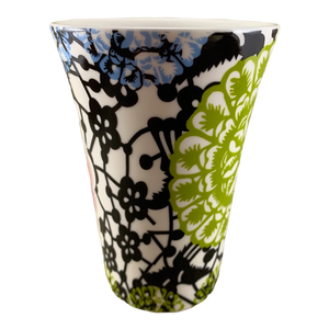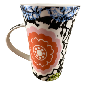 Features beautiful floral artwork wrapping around its exterior surface.
