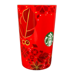There are leaves, berries, poinsettias, and ornaments scattered on the exterior surface.
