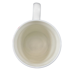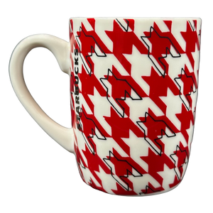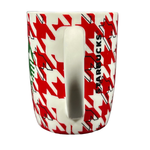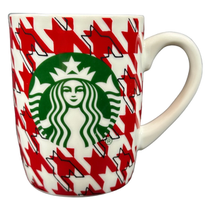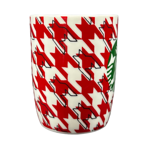 Surrounding the Siren and wrapping around the mug's exterior surface is a red and white houndstooth pattern.