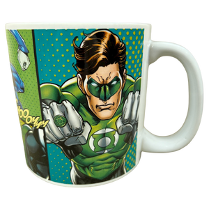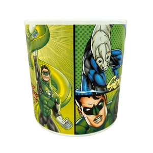 This is a larger than average mug that features multiple images on its exterior surface of Green Lantern and his enemies.