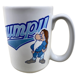 There is a banner above him that reads "Grumpy" in a cursive blue font.