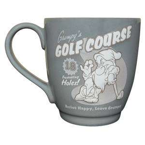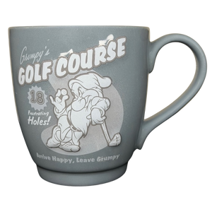 This gray ceramic mug features a fun “Grumpy’s Golf Course” design with Grumpy holding a golf club, along with playful phrases like “18 Frustrating Holes!” and “Arrive Happy, Leave Grumpy.” Its smooth finish, clear artwork, and comfortable handle make it a great everyday mug for Disney fans and golfers who appreciate a little humor with their coffee or tea.