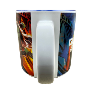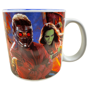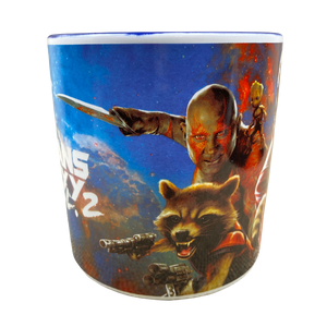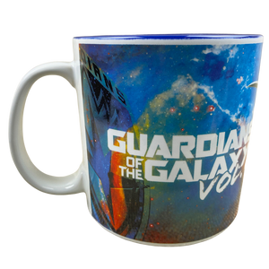 This is an oversized mug. It features It features artwork depicting characters from Marvel's Guardians Of The Galaxy Vol. 2 movie.
