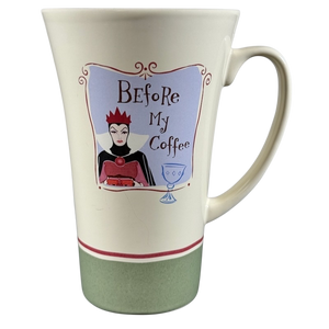 Features an image of the Evil Queen on it's front surface with "Before My Coffee" printed to her right.