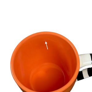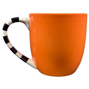 This ultra rare Hallmark mug features a stylish Jack-O'-Lantern design with a striped handle, perfect for enjoying warm drinks during Halloween.