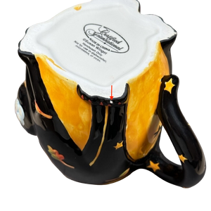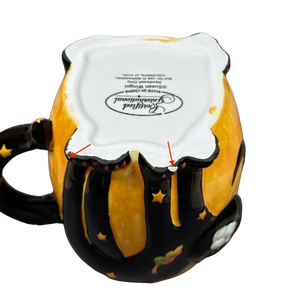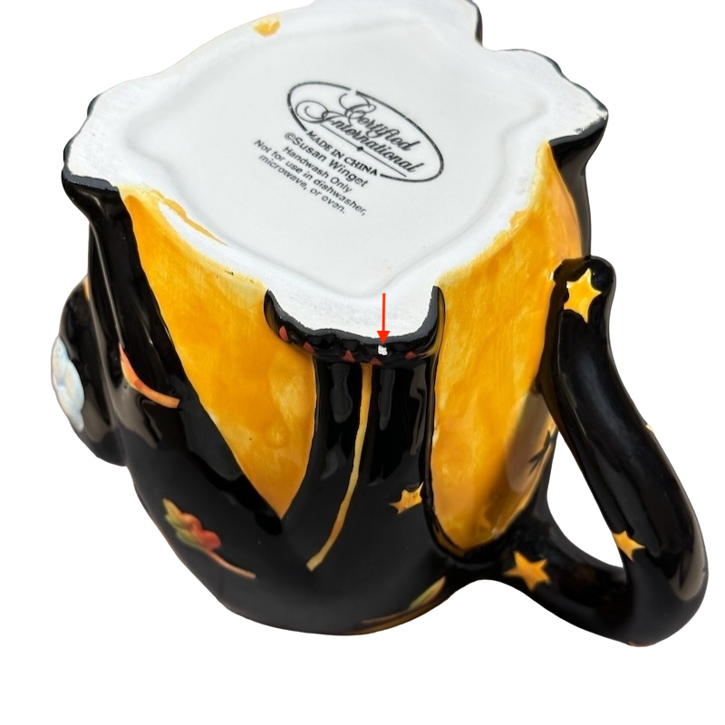 There is a small nick on the rear foot of the cat on the rear surface, please see the red arrow pointing to this in second to last photo.