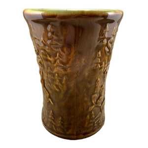Features the same embossed artwork on its front and rear surface consisting of animals and trees. One of the animals is carrying a mug.