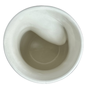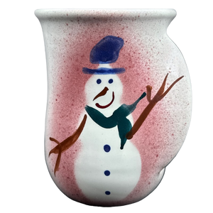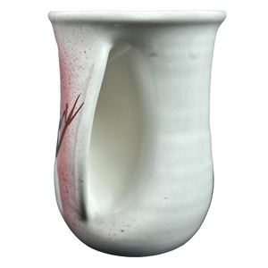 This mug features a hand warmer handle where your left hand fits inside it so that the warm beverage in the mug will warm your hand.