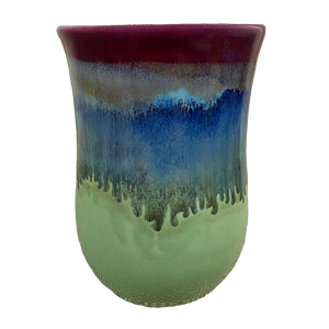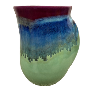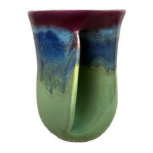 This mug features a hand warmer handle where your hand fits inside it so that the warm beverage in the mug will warm your hand.