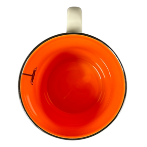 Copy 2: This mug has no chips, cracks, scratches, stains or crazing. There is a small spot on the rear upper surface near the rim where some orange paint was captured in the glaze. Please look above the lollipop in the 3rd photo.