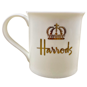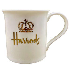 Features a gold crown jubilee on its front and rear surface with "Harrods" printed below it.