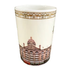 Features artwork wrapping around its exterior surface depicting the iconic luxury department store in London.