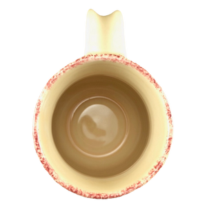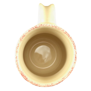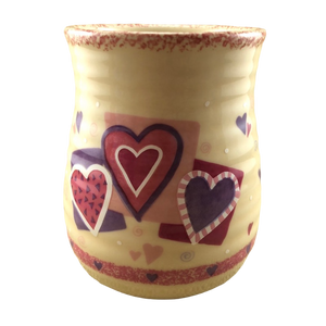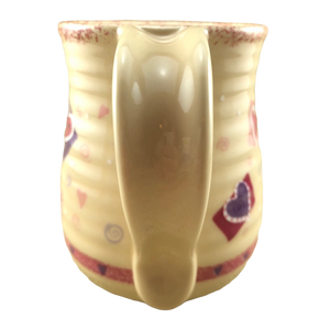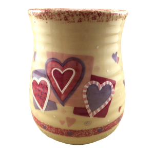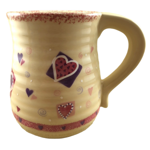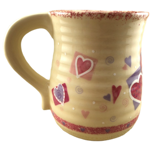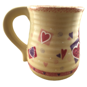 There are also 2 rings of trim wrapping around this mug. The upper ring is speckled pink and the lower ring contains hearts.