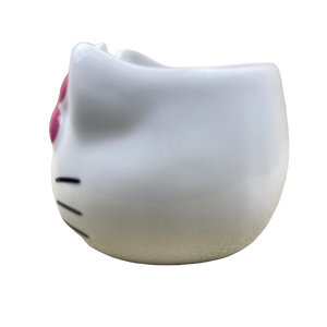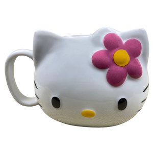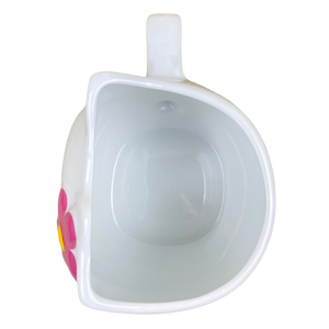 This mug is shaped like Hello Kitty with a pink flower in its hair.