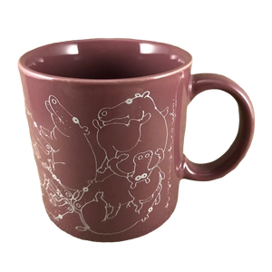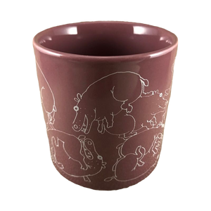 Features artwork wrapping around the exterior surface consisting of hippos being naughty.