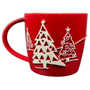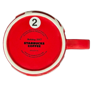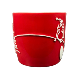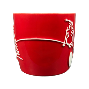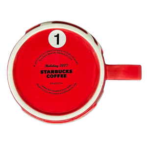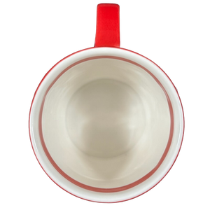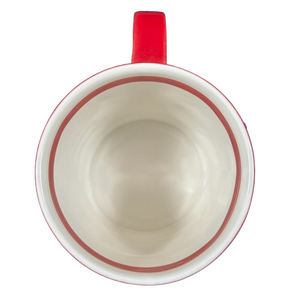 Inside this mug on its upper surface is a ring of red trim that wraps completely around the inner surface.