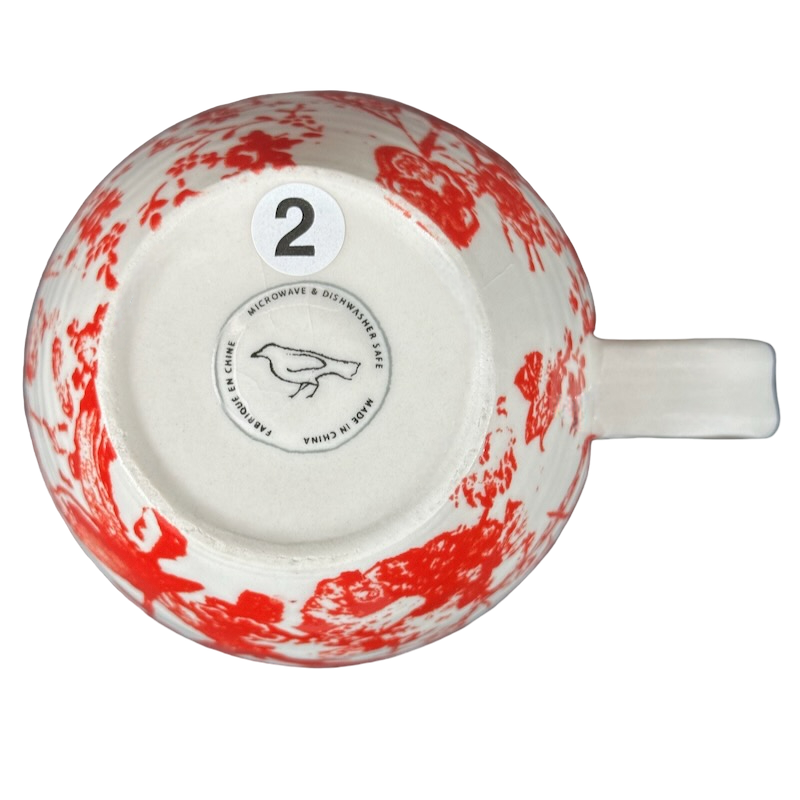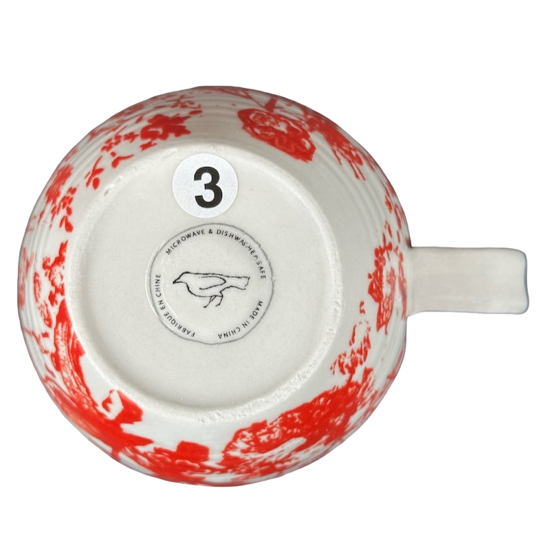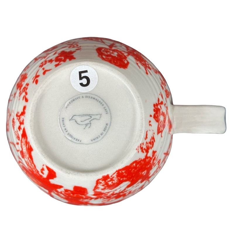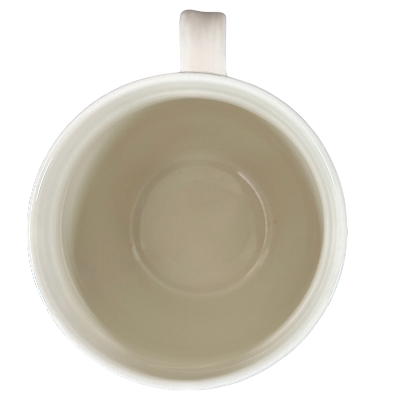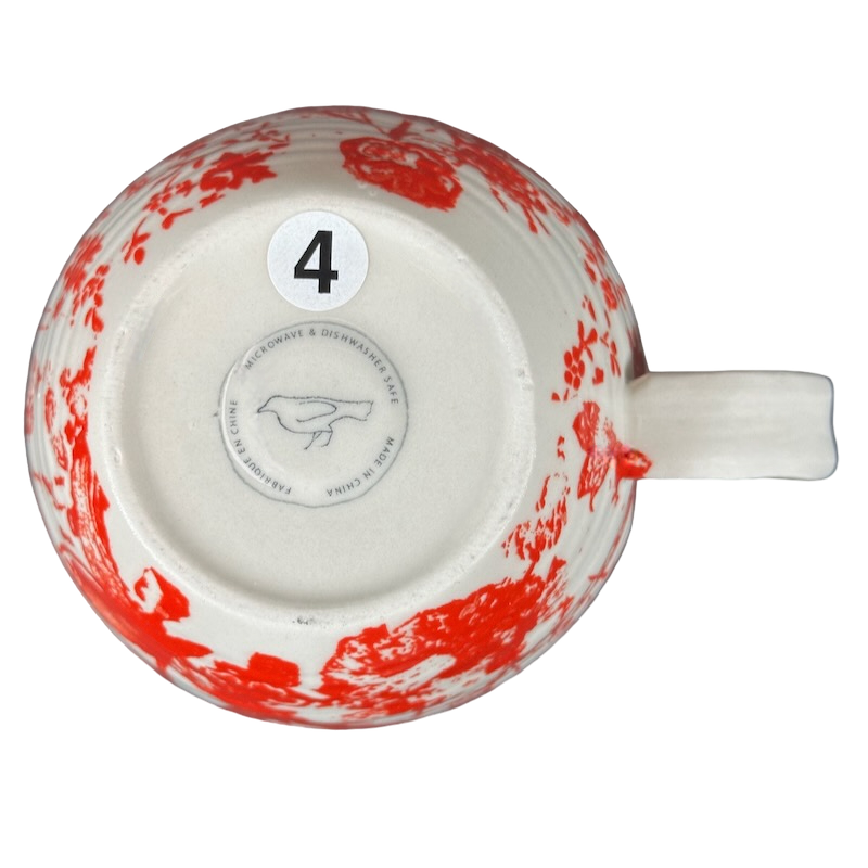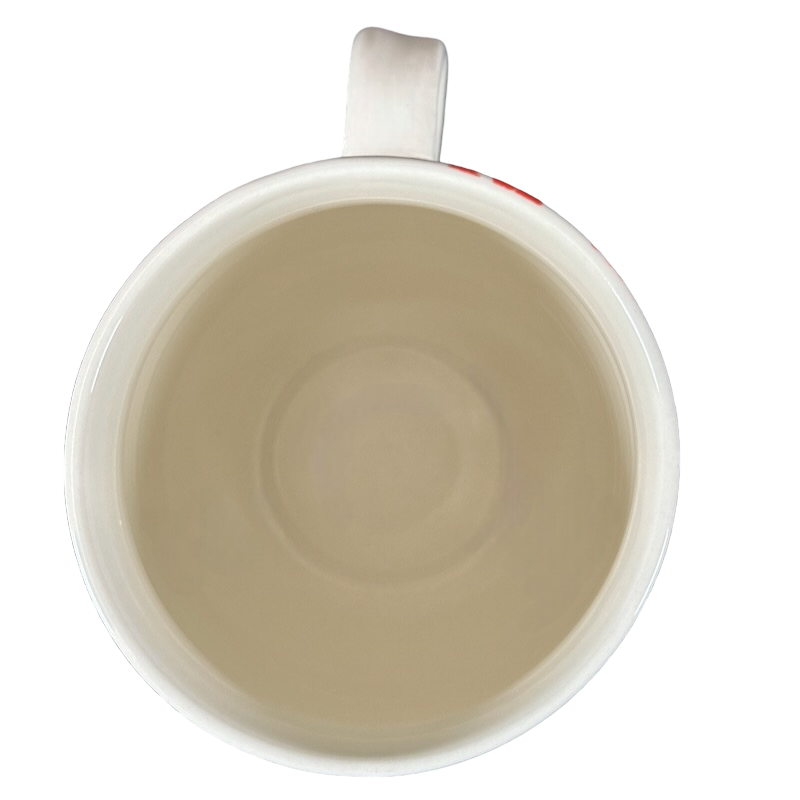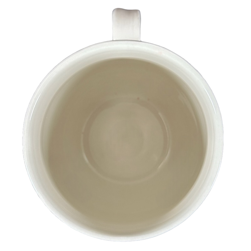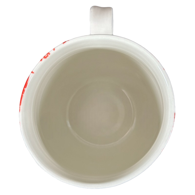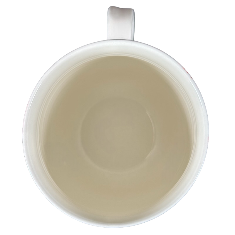 Copy 4: This mug is pre-owned and reconditioned. This mug has no chips, cracks, scratches, stains or crazing. There are some tiny red dots on the interior side walls and bottom surface. These are visible in the fifth photo if you look carefully.