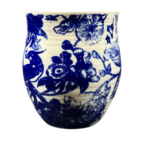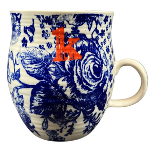 Features a floral pattern wrapping the exterior surface with the letter "k" printed on the upper front surface.