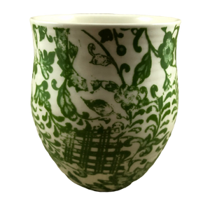 Features a floral pattern wrapping the exterior surface with the letter "n" printed on the front upper surface.
