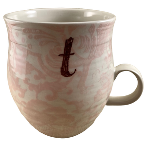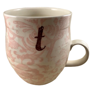 Features a floral pattern wrapping the exterior surface with the letter "t" printed on the upper front surface.