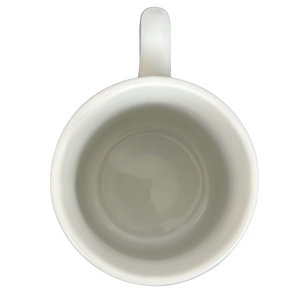 This is a beautiful mug that features hot air balloons flying through the sky wrapping around most of the exterior surface.