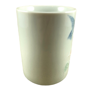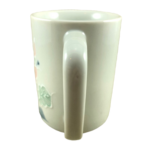 The artwork on this mug is quite unique. The outline of the flower and leaves are done in an embossed white finish while the rest of the colors on the mug are not embossed.
