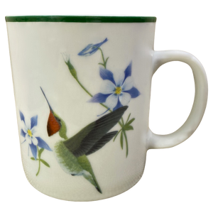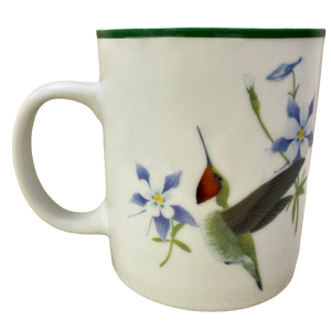 Features the same artwork on its front and rear surface depicting a hummingbird in flight next to blue flowers.