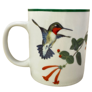 Features the same artwork on its front and rear surface depicting a hummingbird in flight next to red flowers.
